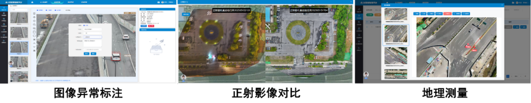 数据自动回传平台,支持智能算法与人工标注,标注成果自动归集至异常管理库,标注信息同步映射至地图,支持标注测量点、基准点线,一键生成测量结果与报告。