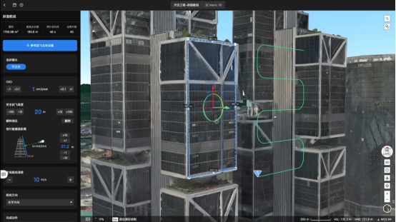▲沿被测物表面生成精细化贴近建模航线